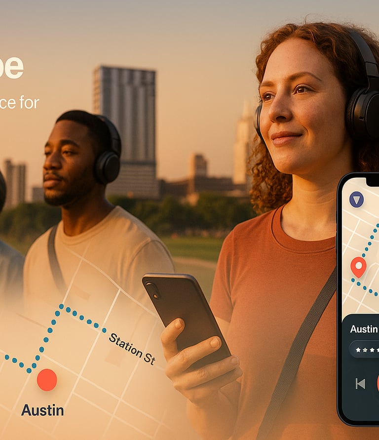 Guided city walks with stories, music, and GPS cues.
